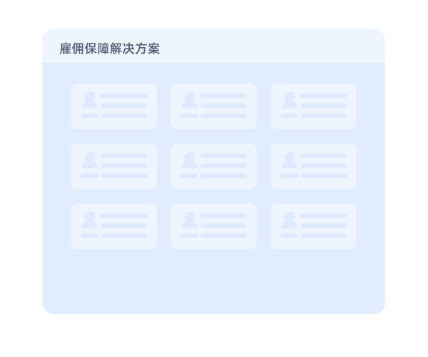 基于雇佣模式,配套提供合规有效的保险保障方案。与各大知名保险公司合作,精选各大保险品牌热门项目,具有保额高、保障范围广、赔付高、理赔快、门槛低、支持定制化等特点,让员工宽心、企业安心。